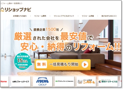リショップナビには数多くのリフォーム業者が登録しており、サイトを利用することで業者を紹介してもらえるサイトです。