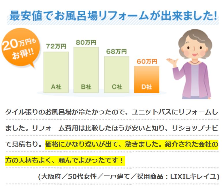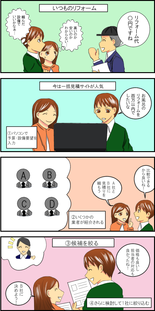 そこでおすすめなのがお風呂リフォームの一括見積サイトです。