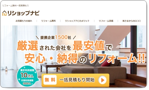 リフォームがまだ検討段階でもメリットは多ので、とりあえずリショップナビを利用してみてはいかがでしょうか。30秒ほどで入力は終わります。