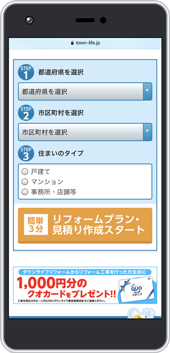 こんな感じでスマホやパソコンからポチポチっと入力するだけで、あなたに合ったリフォーム会社を複数紹介してくれます。